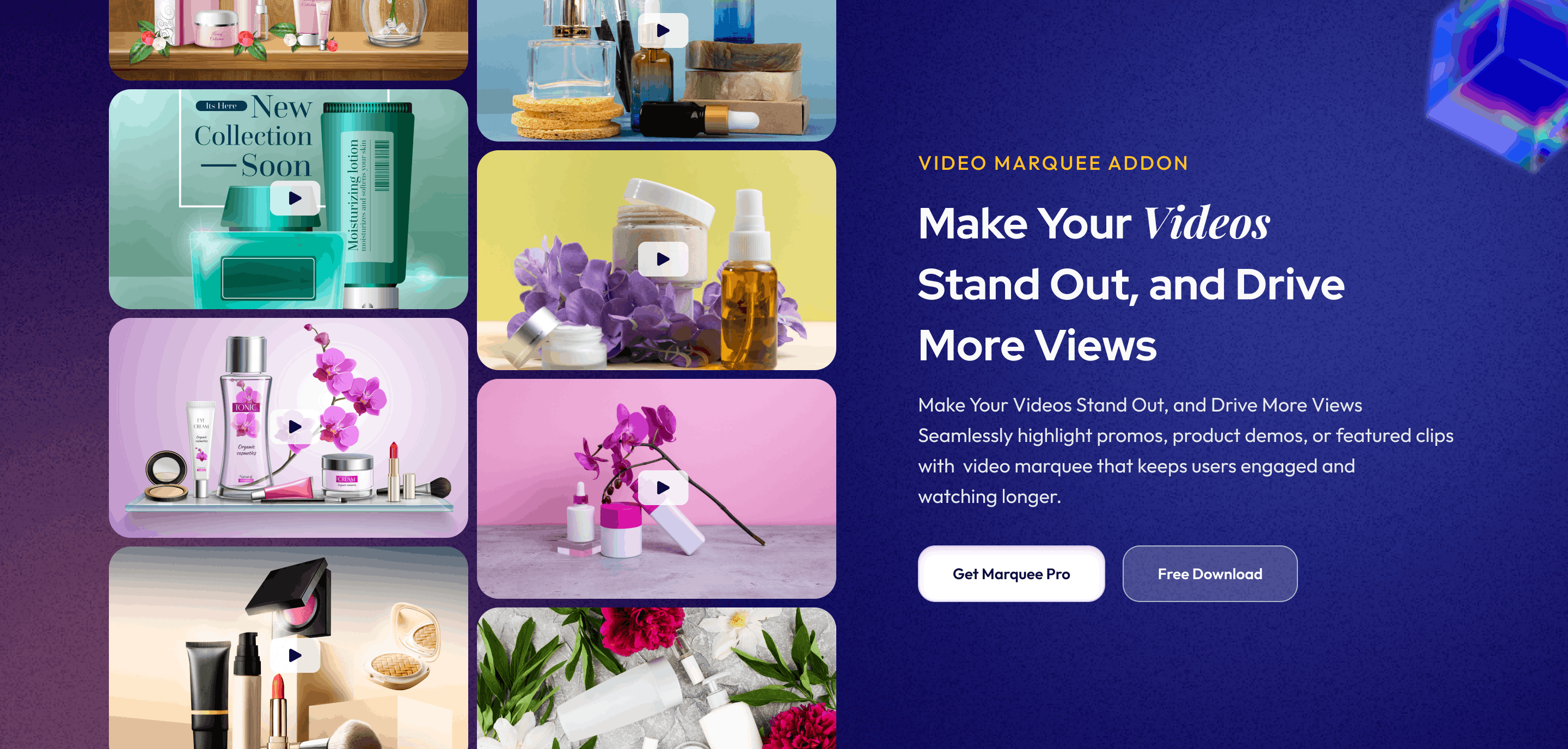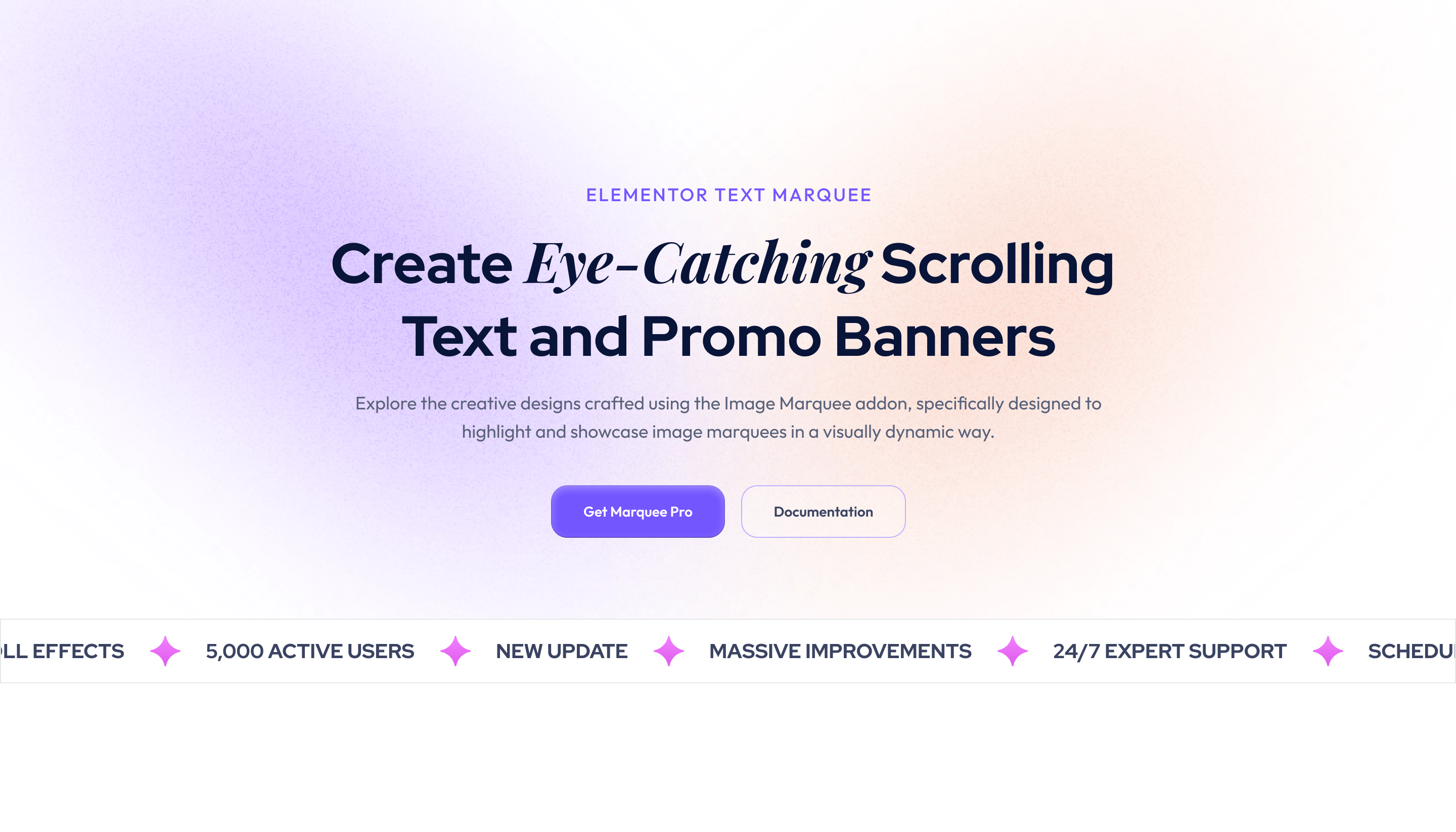 MarqueeAddons Pro brings smooth marquee effects and motion design widgets to Elementor. Create advanced scrolling text, Media, testimonials, videos, 3D effect, cards, posts, products, and more in endless loops. Whether you are a designer, an agency, or a store owner, MarqueeAddons Pro helps you Make your