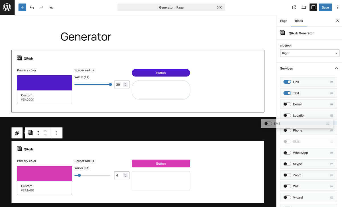 - Intuitive Gutenberg Block: Easily insert the generator into any page or post. Configure active services, default styles, and colors directly from the editor sidebar.